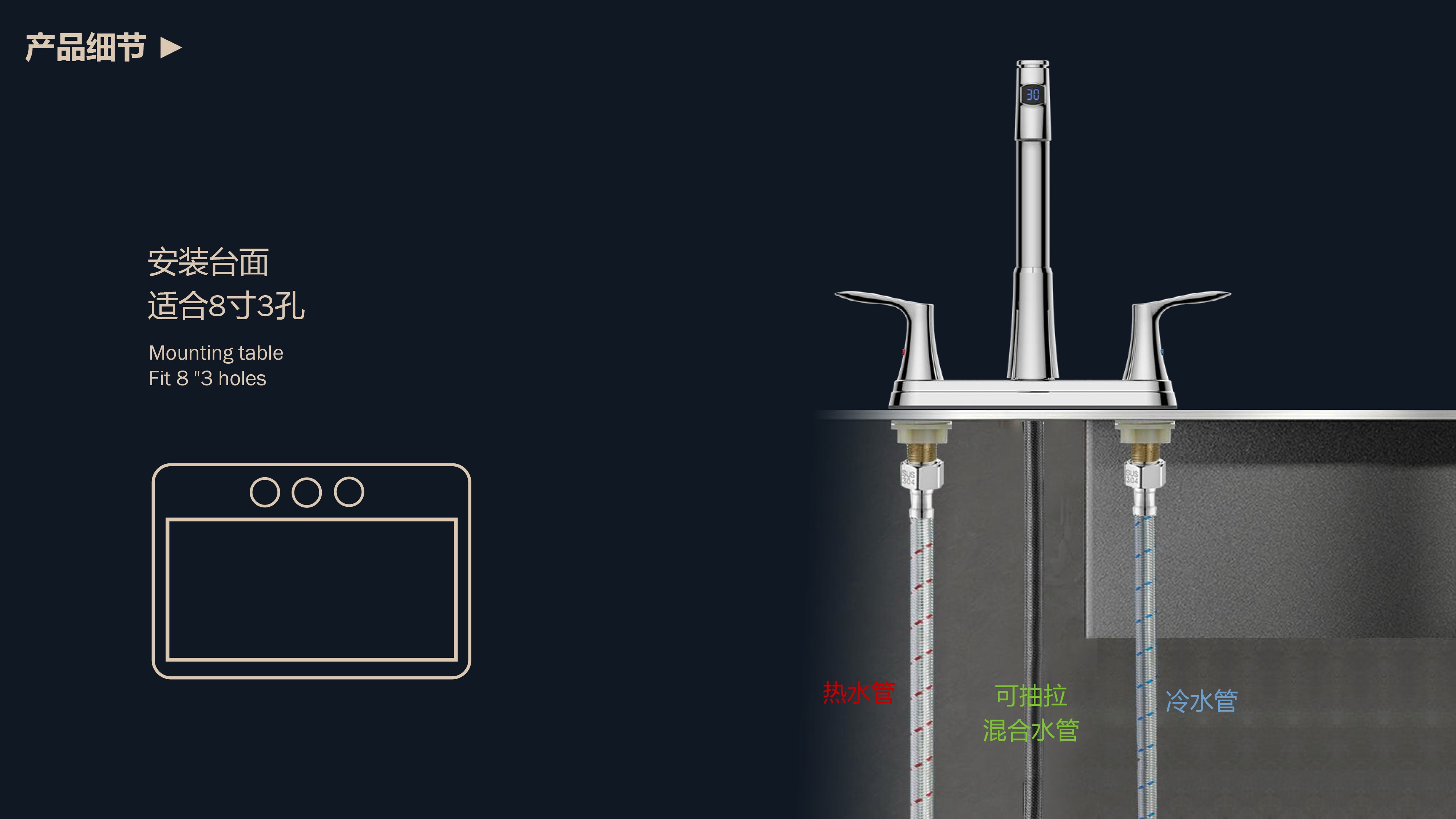 FK8205-A0 8” 雙把溫顯廚房抽拉龍頭